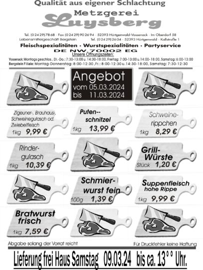 Deprecated: Die Funktion WP_Dependencies->add_data() wurde mit einem Argument aufgerufen, das seit Version 6.9.0 veraltet ist! Conditional Comments für den Internet Explorer werden von allen unterstützten Browsern ignoriert. in /var/www/vhosts/metzgerei-luysberg.de/httpdocs/wp-includes/functions.php on line 6131 Angebot 05.03.-11.03.2024 – Metzgerei LuysbergZum Inhalt springen