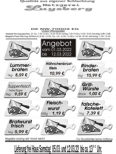 Deprecated: Die Funktion WP_Dependencies->add_data() wurde mit einem Argument aufgerufen, das seit Version 6.9.0 veraltet ist! Conditional Comments für den Internet Explorer werden von allen unterstützten Browsern ignoriert. in /var/www/vhosts/metzgerei-luysberg.de/httpdocs/wp-includes/functions.php on line 6131 Angebot vom 01.03.bis 12.03.22 – Metzgerei LuysbergZum Inhalt springen