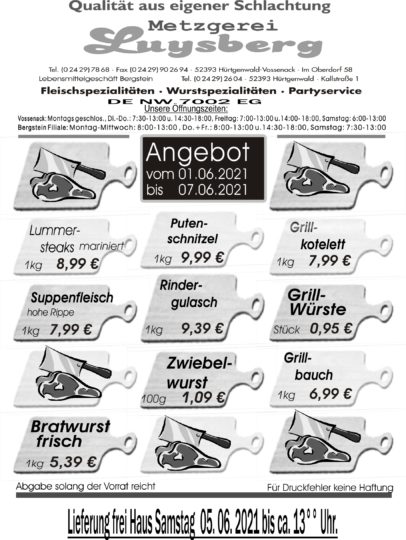 Deprecated: Die Funktion WP_Dependencies->add_data() wurde mit einem Argument aufgerufen, das seit Version 6.9.0 veraltet ist! Conditional Comments für den Internet Explorer werden von allen unterstützten Browsern ignoriert. in /var/www/vhosts/metzgerei-luysberg.de/httpdocs/wp-includes/functions.php on line 6131 Angebot vom 01.06.-07.06.2021 – Metzgerei LuysbergZum Inhalt springen