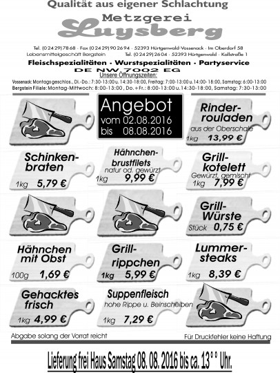 Deprecated: Die Funktion WP_Dependencies->add_data() wurde mit einem Argument aufgerufen, das seit Version 6.9.0 veraltet ist! Conditional Comments für den Internet Explorer werden von allen unterstützten Browsern ignoriert. in /var/www/vhosts/metzgerei-luysberg.de/httpdocs/wp-includes/functions.php on line 6131 Angebot vom 02.08-08.08.16 – Metzgerei LuysbergZum Inhalt springen