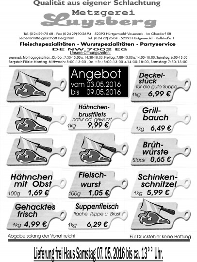 Angebot vom 03.05.-09.05.16 – Metzgerei Luysberg