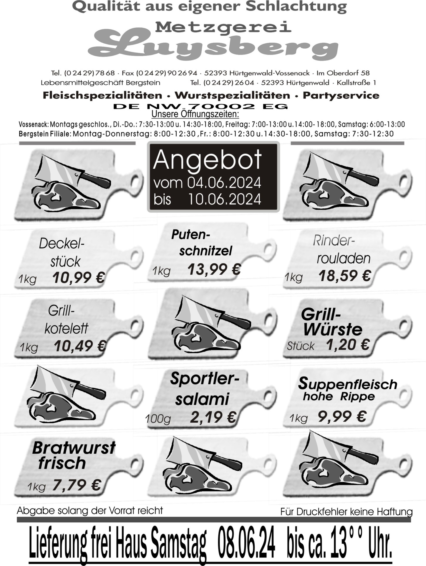 Deprecated: Die Funktion WP_Dependencies->add_data() wurde mit einem Argument aufgerufen, das seit Version 6.9.0 veraltet ist! Conditional Comments für den Internet Explorer werden von allen unterstützten Browsern ignoriert. in /var/www/vhosts/metzgerei-luysberg.de/httpdocs/wp-includes/functions.php on line 6131 Angebot vom 04.06.-10.06.24 – Metzgerei LuysbergZum Inhalt springen