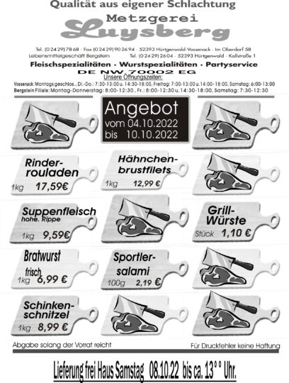 Angebot vom 04.10.-10.10.22 – Metzgerei Luysberg