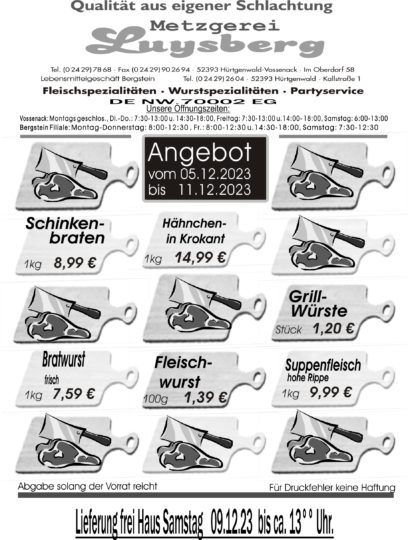 Deprecated: Die Funktion WP_Dependencies->add_data() wurde mit einem Argument aufgerufen, das seit Version 6.9.0 veraltet ist! Conditional Comments für den Internet Explorer werden von allen unterstützten Browsern ignoriert. in /var/www/vhosts/metzgerei-luysberg.de/httpdocs/wp-includes/functions.php on line 6131 Angebot vom 05.12.-11.12.23 – Metzgerei LuysbergZum Inhalt springen