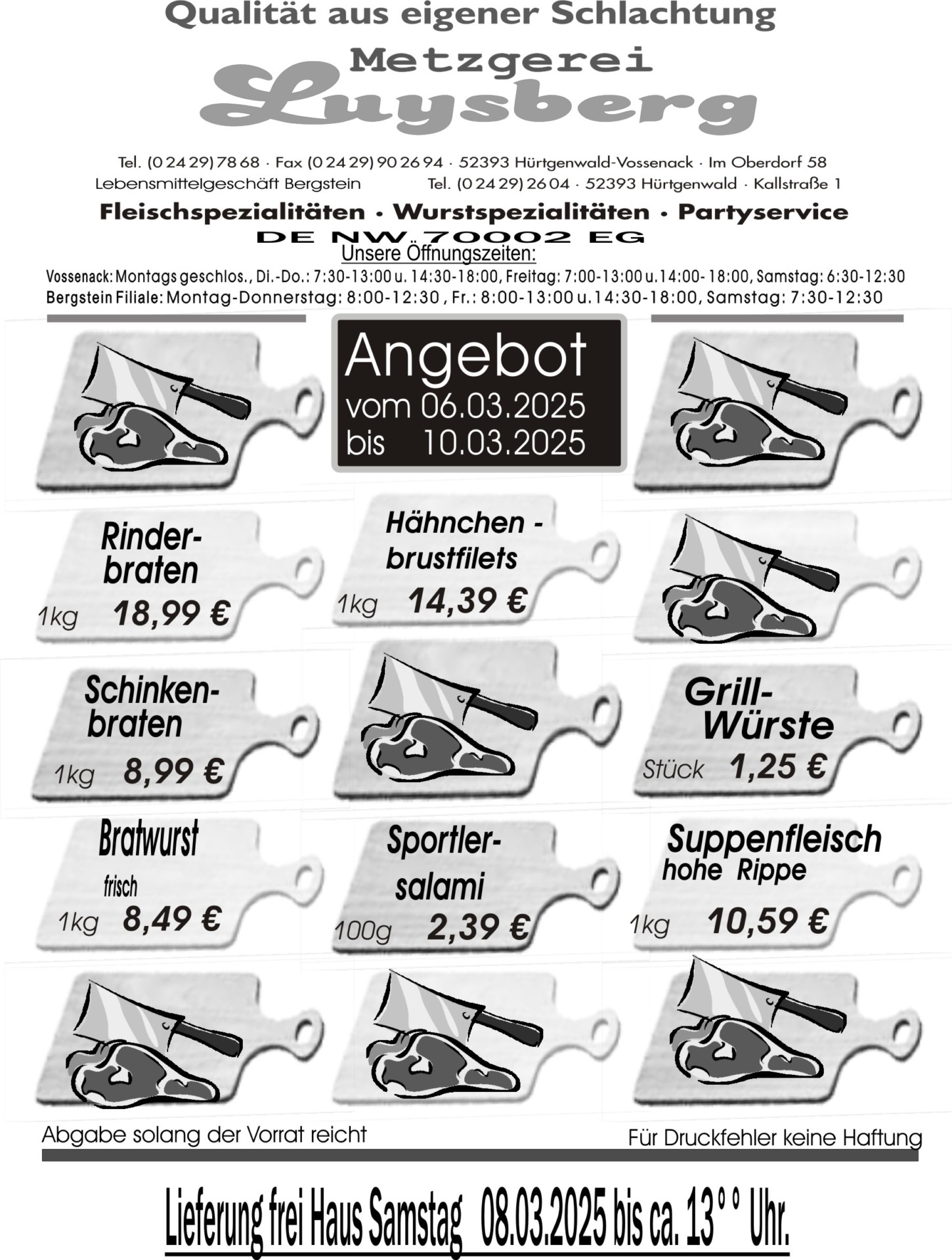 Deprecated: Die Funktion WP_Dependencies->add_data() wurde mit einem Argument aufgerufen, das seit Version 6.9.0 veraltet ist! Conditional Comments für den Internet Explorer werden von allen unterstützten Browsern ignoriert. in /var/www/vhosts/metzgerei-luysberg.de/httpdocs/wp-includes/functions.php on line 6131 Angebot vom 06.03.-10.03.25 – Metzgerei LuysbergZum Inhalt springen