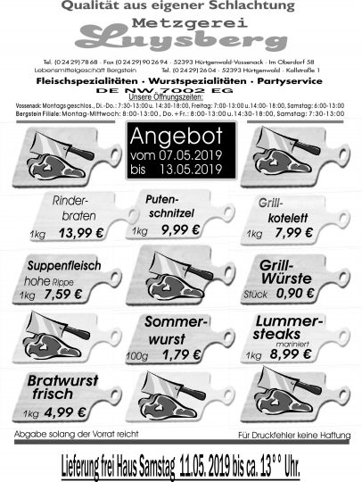 Angebot vom 07.05.-13.05.19 – Metzgerei Luysberg
