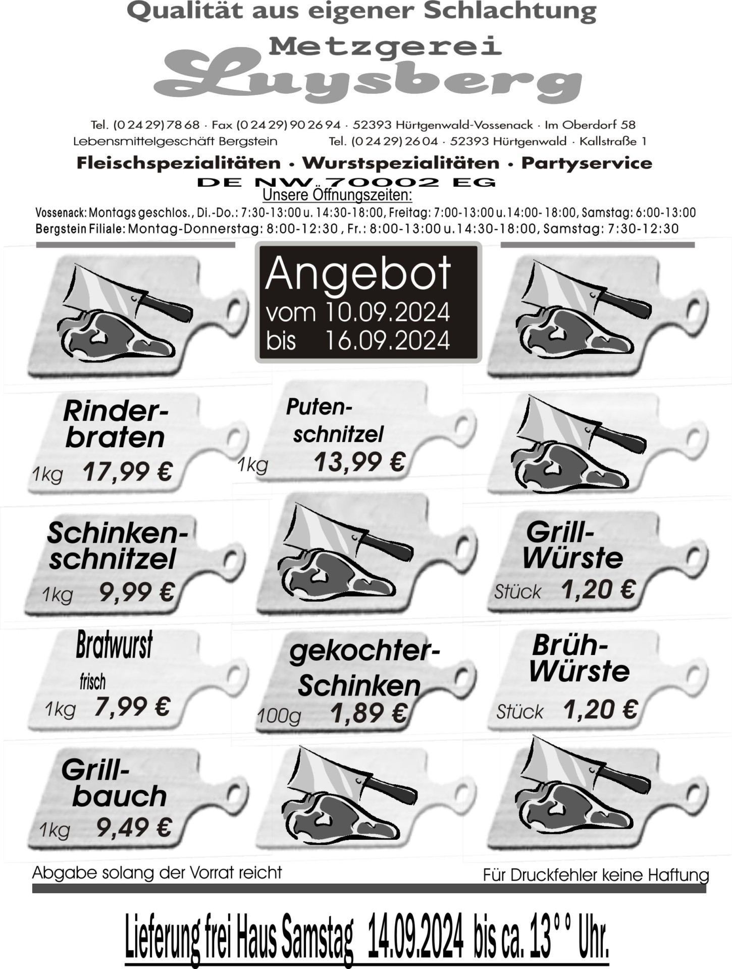 Deprecated: Die Funktion WP_Dependencies->add_data() wurde mit einem Argument aufgerufen, das seit Version 6.9.0 veraltet ist! Conditional Comments für den Internet Explorer werden von allen unterstützten Browsern ignoriert. in /var/www/vhosts/metzgerei-luysberg.de/httpdocs/wp-includes/functions.php on line 6131 Angebot vom 10.09.-16.09.2024 – Metzgerei LuysbergZum Inhalt springen