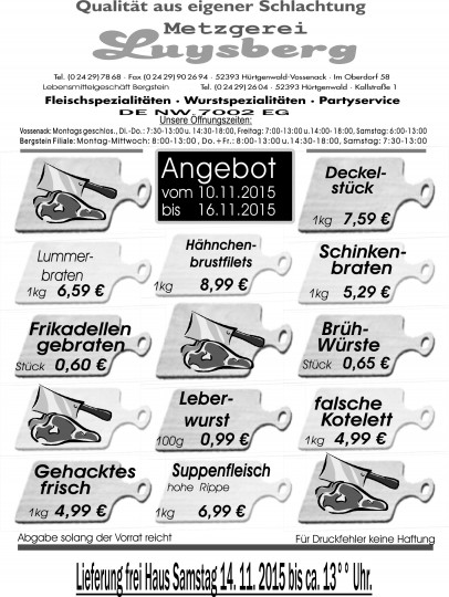 Angebot vom 10.11-16.11.15 – Metzgerei Luysberg