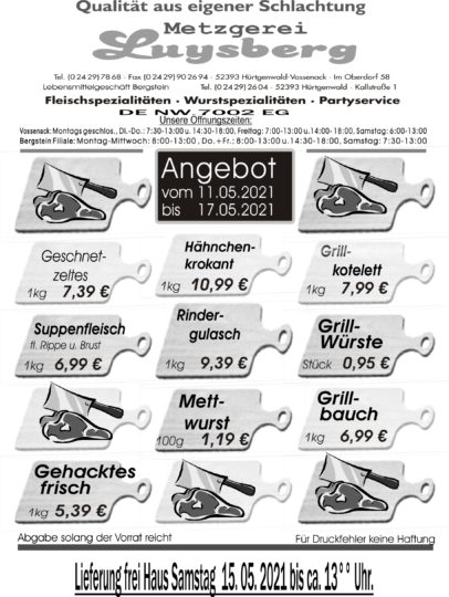 Deprecated: Die Funktion WP_Dependencies->add_data() wurde mit einem Argument aufgerufen, das seit Version 6.9.0 veraltet ist! Conditional Comments für den Internet Explorer werden von allen unterstützten Browsern ignoriert. in /var/www/vhosts/metzgerei-luysberg.de/httpdocs/wp-includes/functions.php on line 6131 Angebot vom 11.05.-17.05.2021 – Metzgerei LuysbergZum Inhalt springen