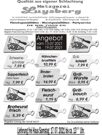 Deprecated: Die Funktion WP_Dependencies->add_data() wurde mit einem Argument aufgerufen, das seit Version 6.9.0 veraltet ist! Conditional Comments für den Internet Explorer werden von allen unterstützten Browsern ignoriert. in /var/www/vhosts/metzgerei-luysberg.de/httpdocs/wp-includes/functions.php on line 6131 Angebot vom 13.07 bis zum 19.07 – Metzgerei LuysbergZum Inhalt springen
