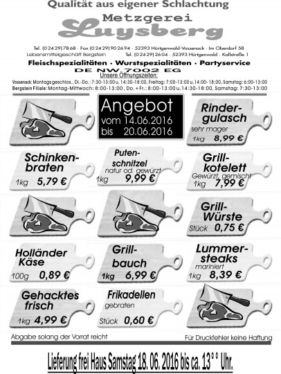 Deprecated: Die Funktion WP_Dependencies->add_data() wurde mit einem Argument aufgerufen, das seit Version 6.9.0 veraltet ist! Conditional Comments für den Internet Explorer werden von allen unterstützten Browsern ignoriert. in /var/www/vhosts/metzgerei-luysberg.de/httpdocs/wp-includes/functions.php on line 6131 Angebot vom 14.06-20.06.16 – Metzgerei LuysbergZum Inhalt springen