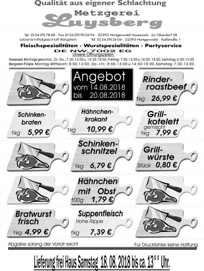 Angebot vom 14.08.-20.08.18 – Metzgerei Luysberg