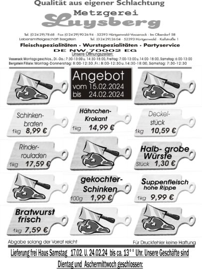 Angebot vom 15.02 bis zum 24.02 – Metzgerei Luysberg