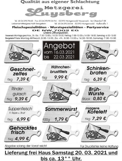 Deprecated: Die Funktion WP_Dependencies->add_data() wurde mit einem Argument aufgerufen, das seit Version 6.9.0 veraltet ist! Conditional Comments für den Internet Explorer werden von allen unterstützten Browsern ignoriert. in /var/www/vhosts/metzgerei-luysberg.de/httpdocs/wp-includes/functions.php on line 6131 Angebot vom 16.03.-22.03.21 – Metzgerei LuysbergZum Inhalt springen