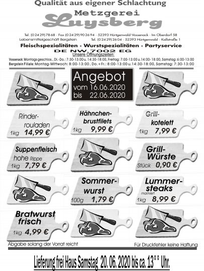 Deprecated: Die Funktion WP_Dependencies->add_data() wurde mit einem Argument aufgerufen, das seit Version 6.9.0 veraltet ist! Conditional Comments für den Internet Explorer werden von allen unterstützten Browsern ignoriert. in /var/www/vhosts/metzgerei-luysberg.de/httpdocs/wp-includes/functions.php on line 6131 Angebot vom 16.06.-22.06.2020 – Metzgerei LuysbergZum Inhalt springen