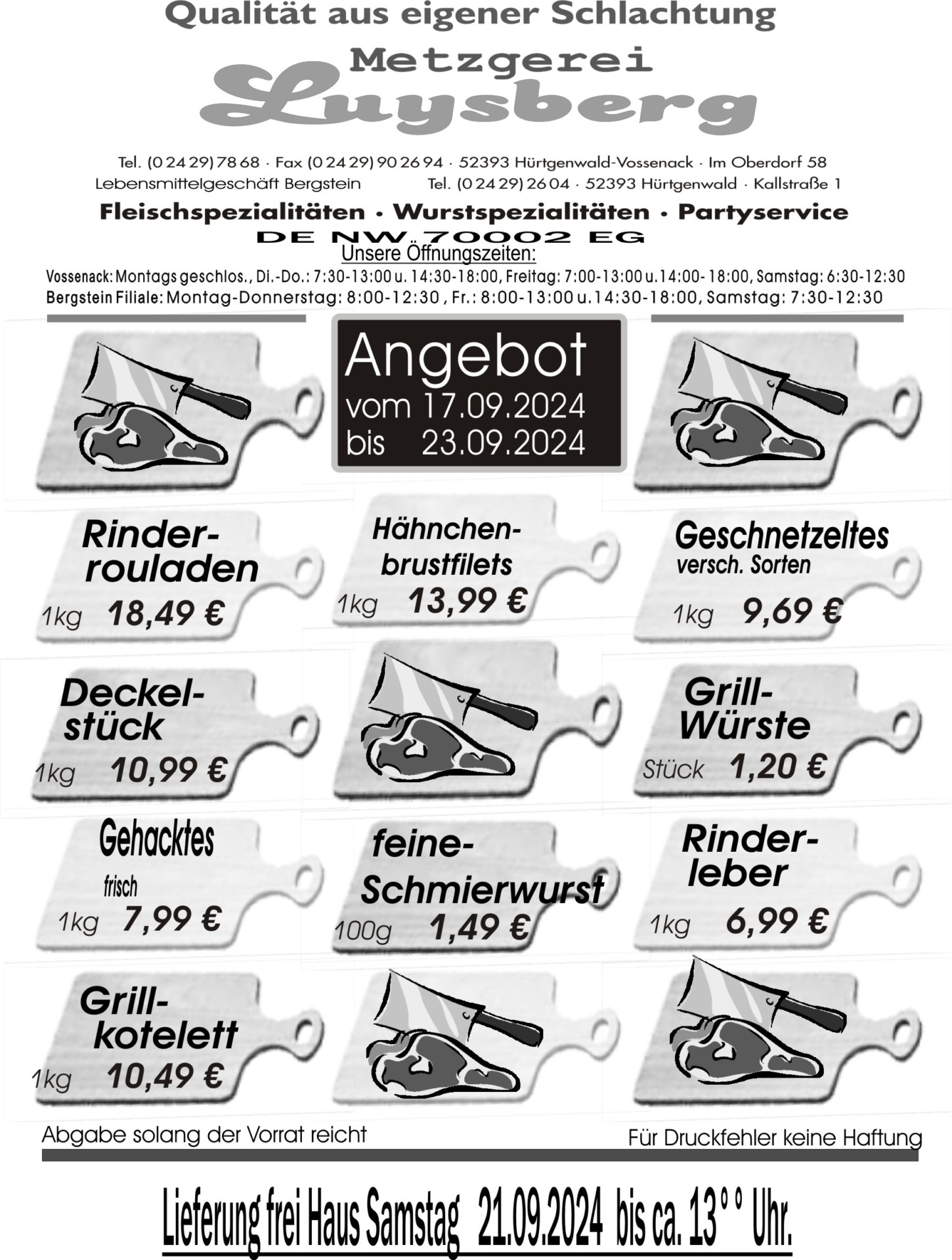 Deprecated: Die Funktion WP_Dependencies->add_data() wurde mit einem Argument aufgerufen, das seit Version 6.9.0 veraltet ist! Conditional Comments für den Internet Explorer werden von allen unterstützten Browsern ignoriert. in /var/www/vhosts/metzgerei-luysberg.de/httpdocs/wp-includes/functions.php on line 6131 Angebot vom 17.09.-23.09.24 – Metzgerei LuysbergZum Inhalt springen