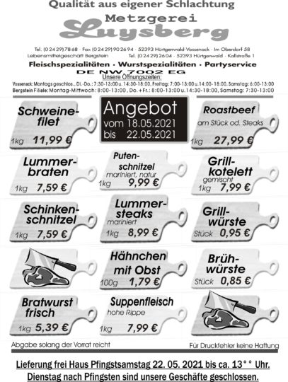 Deprecated: Die Funktion WP_Dependencies->add_data() wurde mit einem Argument aufgerufen, das seit Version 6.9.0 veraltet ist! Conditional Comments für den Internet Explorer werden von allen unterstützten Browsern ignoriert. in /var/www/vhosts/metzgerei-luysberg.de/httpdocs/wp-includes/functions.php on line 6131 Angebot vom 18.05.-22.05.21 – Metzgerei LuysbergZum Inhalt springen