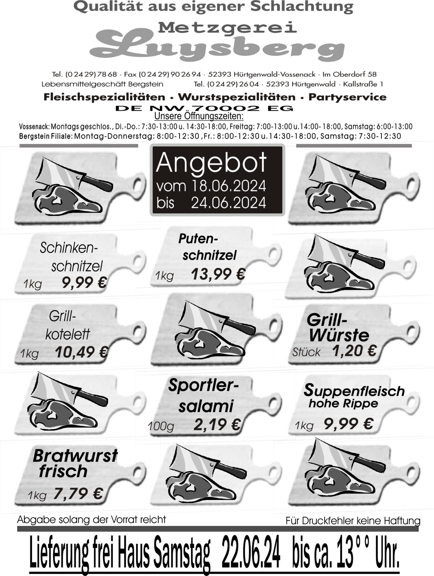 Deprecated: Die Funktion WP_Dependencies->add_data() wurde mit einem Argument aufgerufen, das seit Version 6.9.0 veraltet ist! Conditional Comments für den Internet Explorer werden von allen unterstützten Browsern ignoriert. in /var/www/vhosts/metzgerei-luysberg.de/httpdocs/wp-includes/functions.php on line 6131 Angebot vom 18.06.-24.06.24 – Metzgerei LuysbergZum Inhalt springen