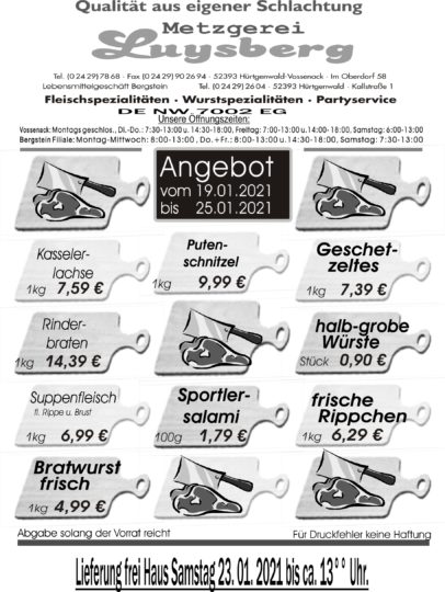 Angebot vom 19.01.-25.01.21 – Metzgerei Luysberg