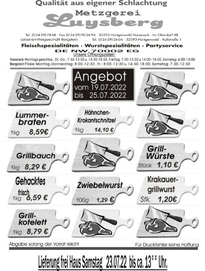 Deprecated: Die Funktion WP_Dependencies->add_data() wurde mit einem Argument aufgerufen, das seit Version 6.9.0 veraltet ist! Conditional Comments für den Internet Explorer werden von allen unterstützten Browsern ignoriert. in /var/www/vhosts/metzgerei-luysberg.de/httpdocs/wp-includes/functions.php on line 6131 Angebot vom 19.07.-25.07.22 – Metzgerei LuysbergZum Inhalt springen