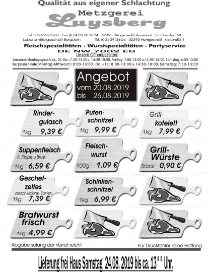Angebot vom 20.08.-26.08.19 – Metzgerei Luysberg