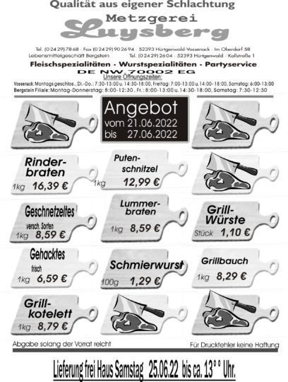 Deprecated: Die Funktion WP_Dependencies->add_data() wurde mit einem Argument aufgerufen, das seit Version 6.9.0 veraltet ist! Conditional Comments für den Internet Explorer werden von allen unterstützten Browsern ignoriert. in /var/www/vhosts/metzgerei-luysberg.de/httpdocs/wp-includes/functions.php on line 6131 Angebot vom 21.06.-27.06.2022 – Metzgerei LuysbergZum Inhalt springen
