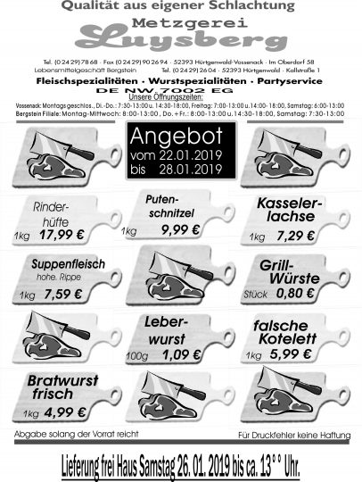 Angebot vom 22.01.-28.01.19 – Metzgerei Luysberg