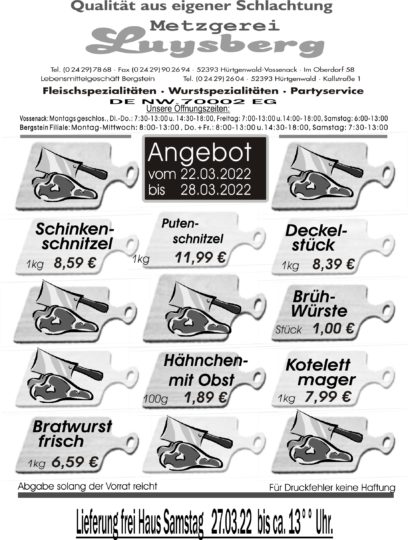 Angebot vom 22.03.-28.03.22 – Metzgerei Luysberg