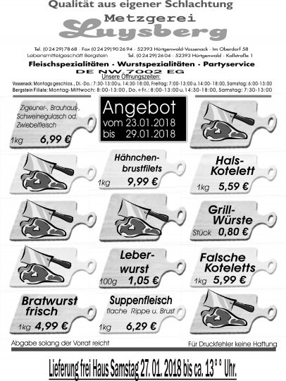 Angebot vom 23.01.-29.01.18 – Metzgerei Luysberg