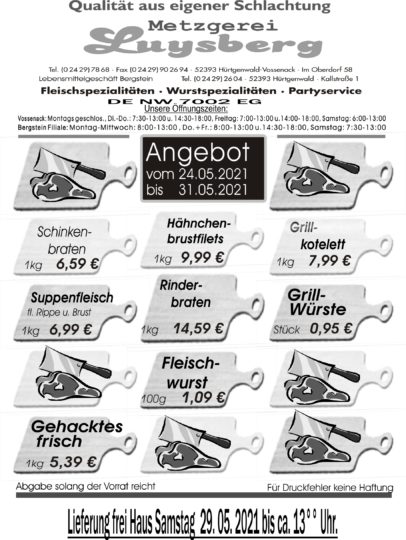 Angebot vom 24.05.-31.05.2021