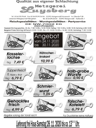 Angebot vom 24.11.-30.11.2020 – Metzgerei Luysberg