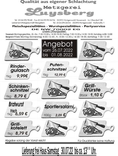 Angebot vom 25.07.-01.08.2022 – Metzgerei Luysberg