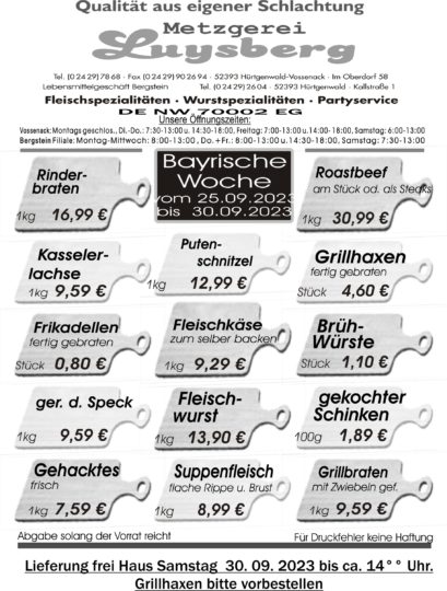Deprecated: Die Funktion WP_Dependencies->add_data() wurde mit einem Argument aufgerufen, das seit Version 6.9.0 veraltet ist! Conditional Comments für den Internet Explorer werden von allen unterstützten Browsern ignoriert. in /var/www/vhosts/metzgerei-luysberg.de/httpdocs/wp-includes/functions.php on line 6131 Angebot vom 25.09.-30.09.23 – Metzgerei LuysbergZum Inhalt springen