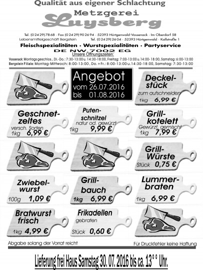 Deprecated: Die Funktion WP_Dependencies->add_data() wurde mit einem Argument aufgerufen, das seit Version 6.9.0 veraltet ist! Conditional Comments für den Internet Explorer werden von allen unterstützten Browsern ignoriert. in /var/www/vhosts/metzgerei-luysberg.de/httpdocs/wp-includes/functions.php on line 6131 Angebot vom 26.07.-01.08.16 – Metzgerei LuysbergZum Inhalt springen