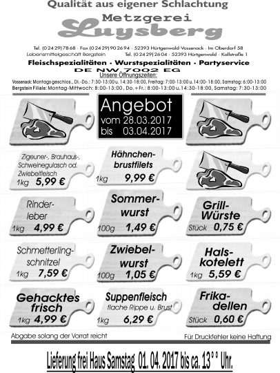Angebot vom 28.03.-03.04.17 – Metzgerei Luysberg