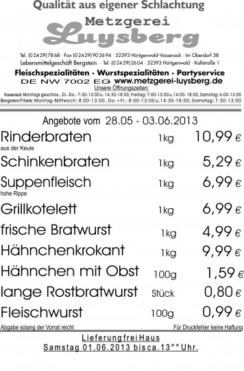 Angebot vom 28.05-03.06.13 – Metzgerei Luysberg