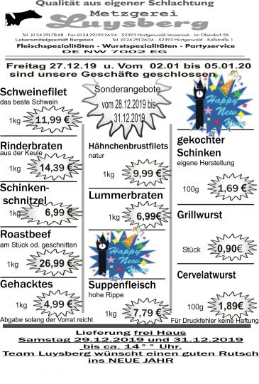 Angebot vom 28.12.-31.12.2019 – Metzgerei Luysberg
