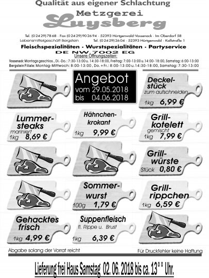 Angebot vom 29.05.-04.06.18 – Metzgerei Luysberg