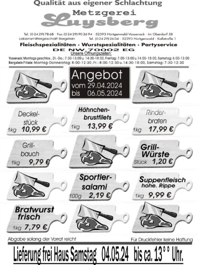 Deprecated: Die Funktion WP_Dependencies->add_data() wurde mit einem Argument aufgerufen, das seit Version 6.9.0 veraltet ist! Conditional Comments für den Internet Explorer werden von allen unterstützten Browsern ignoriert. in /var/www/vhosts/metzgerei-luysberg.de/httpdocs/wp-includes/functions.php on line 6131 Angebot vom 30.04.-06.05.24 – Metzgerei LuysbergZum Inhalt springen