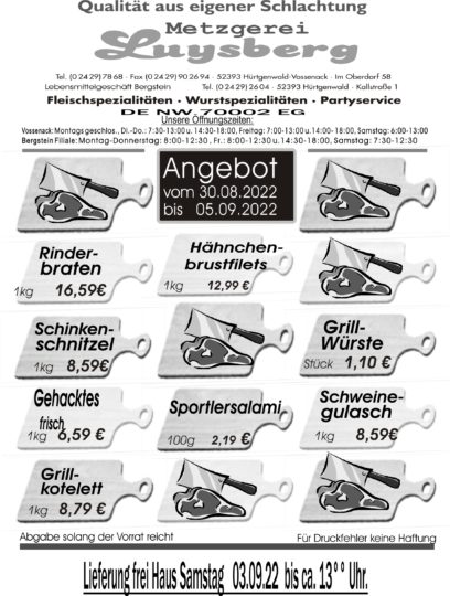 Angebot vom 30.08.22 – Metzgerei Luysberg