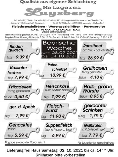 Deprecated: Die Funktion WP_Dependencies->add_data() wurde mit einem Argument aufgerufen, das seit Version 6.9.0 veraltet ist! Conditional Comments für den Internet Explorer werden von allen unterstützten Browsern ignoriert. in /var/www/vhosts/metzgerei-luysberg.de/httpdocs/wp-includes/functions.php on line 6131 Oktoberfest 28.09.-04.10.21 – Metzgerei LuysbergZum Inhalt springen