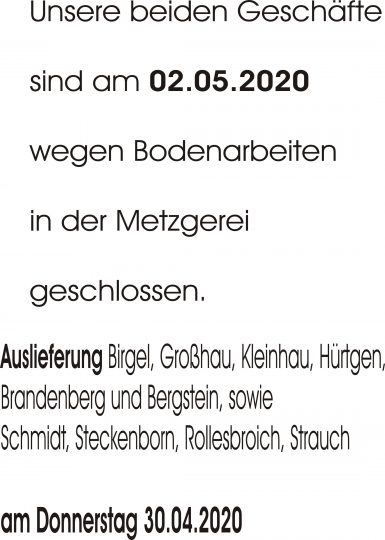 Deprecated: Die Funktion WP_Dependencies->add_data() wurde mit einem Argument aufgerufen, das seit Version 6.9.0 veraltet ist! Conditional Comments für den Internet Explorer werden von allen unterstützten Browsern ignoriert. in /var/www/vhosts/metzgerei-luysberg.de/httpdocs/wp-includes/functions.php on line 6131 Wir haben geschlossen am Samstag – Metzgerei LuysbergZum Inhalt springen
